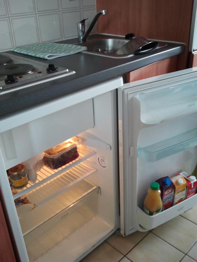 La kitchenette est équipée d'un four traditionnel, d"une plaque de cuisson électrique deux feux, d'un réfrigérateur et d'un micro-ondes.